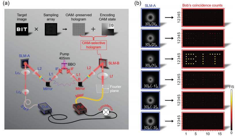 图:高维轨道角动量纠缠全息实验方案及部分结果展示