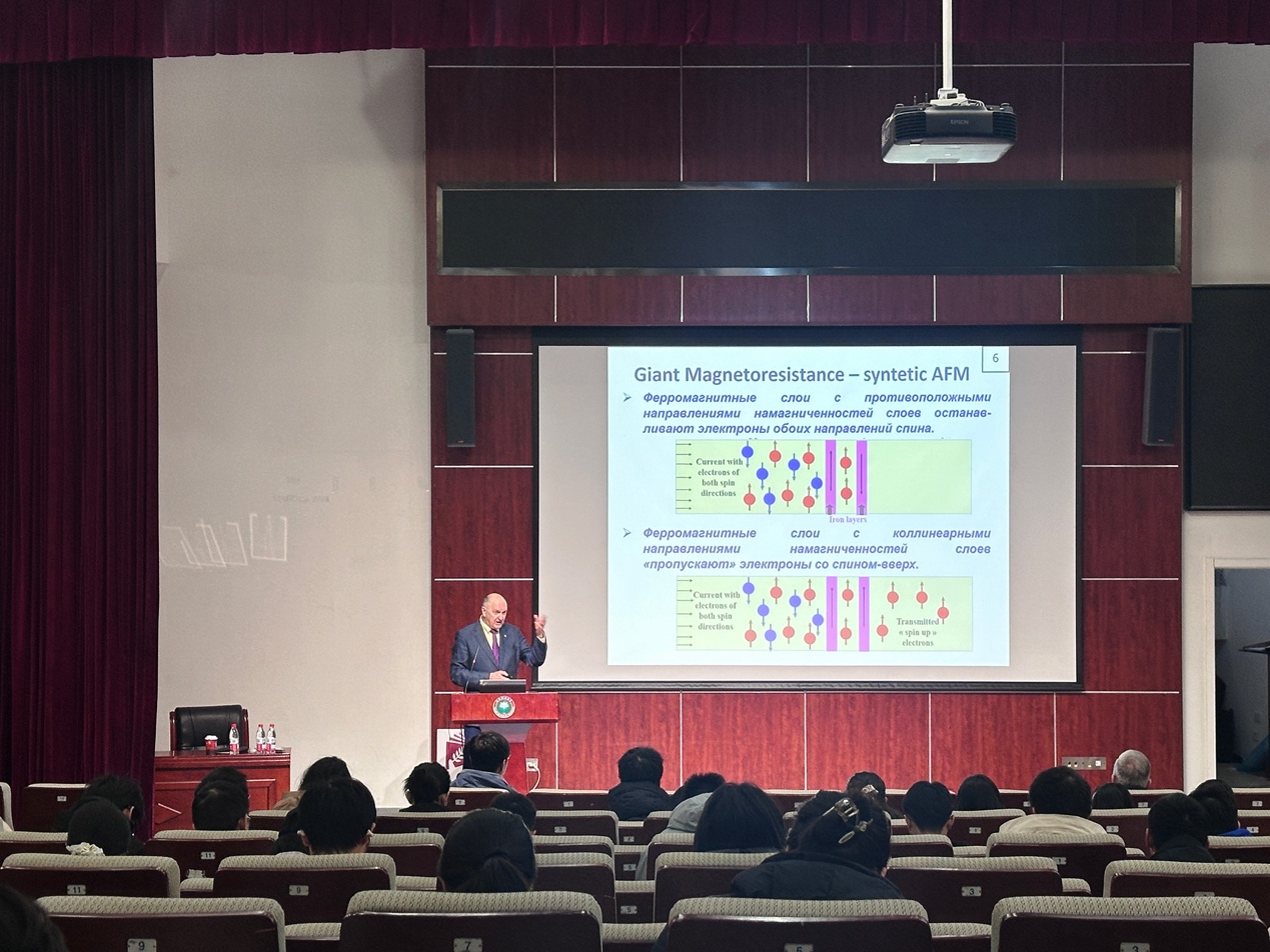 来源: 作者: 发布时间:2025-11-24北京理工大学 “百家大讲堂” 系列学术报告于2025年11月22日在良乡北校区综合教学楼报告厅成功举行。本次活动由校科协与物理学院联合承办,特邀俄罗斯科学院 Sergey A. Nikitov 院士作了题为《PT symmetry in spintronics, magnonics and phononics》的学术报告。